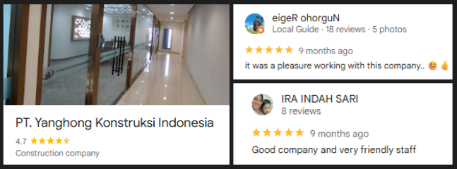 Dalam industri konstruksi, mendapatkan penilaian tinggi dari pelanggan bukanlah hal yang mudah. Sebab, evaluasi mereka tidak hanya mencakup kualitas akhir dari suatu ruang, tetapi juga pengalaman menyeluruh dari sebuah proyek—mulai dari perancangan, konstruksi, instalasi, hingga penyerahan. PT. YANGHONG KONSTRUKSI INDONESIA berhasil meraih rating 4,7 bintang di Google. Angka tersebut tidak hanya mencerminkan kemampuan teknis skala besar perusahaan, tetapi juga konsistensi mereka dalam menerapkan prinsip-prinsip manajemen secara detail.
